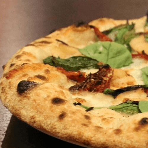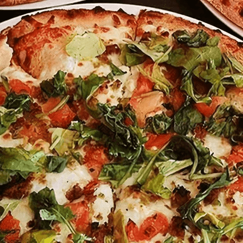 Shredded Mozzarella, Asiago, Grilled Chicken, Fresh Spinach, and Marinated Balsamic Sun Dried Tomatoes.