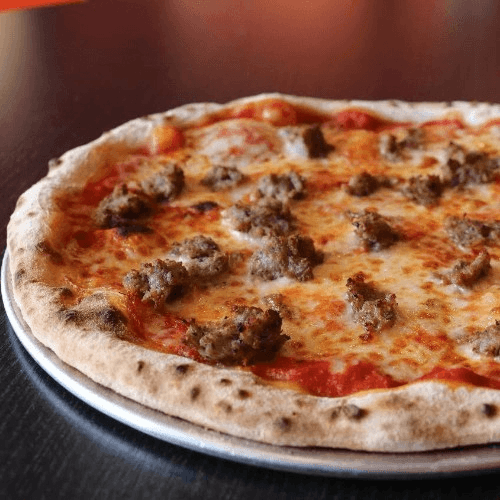 Signature Marinara, Shredded Mozzarella, Italian Sausage, Red Peppers, Green Peppers, and Red Onions.