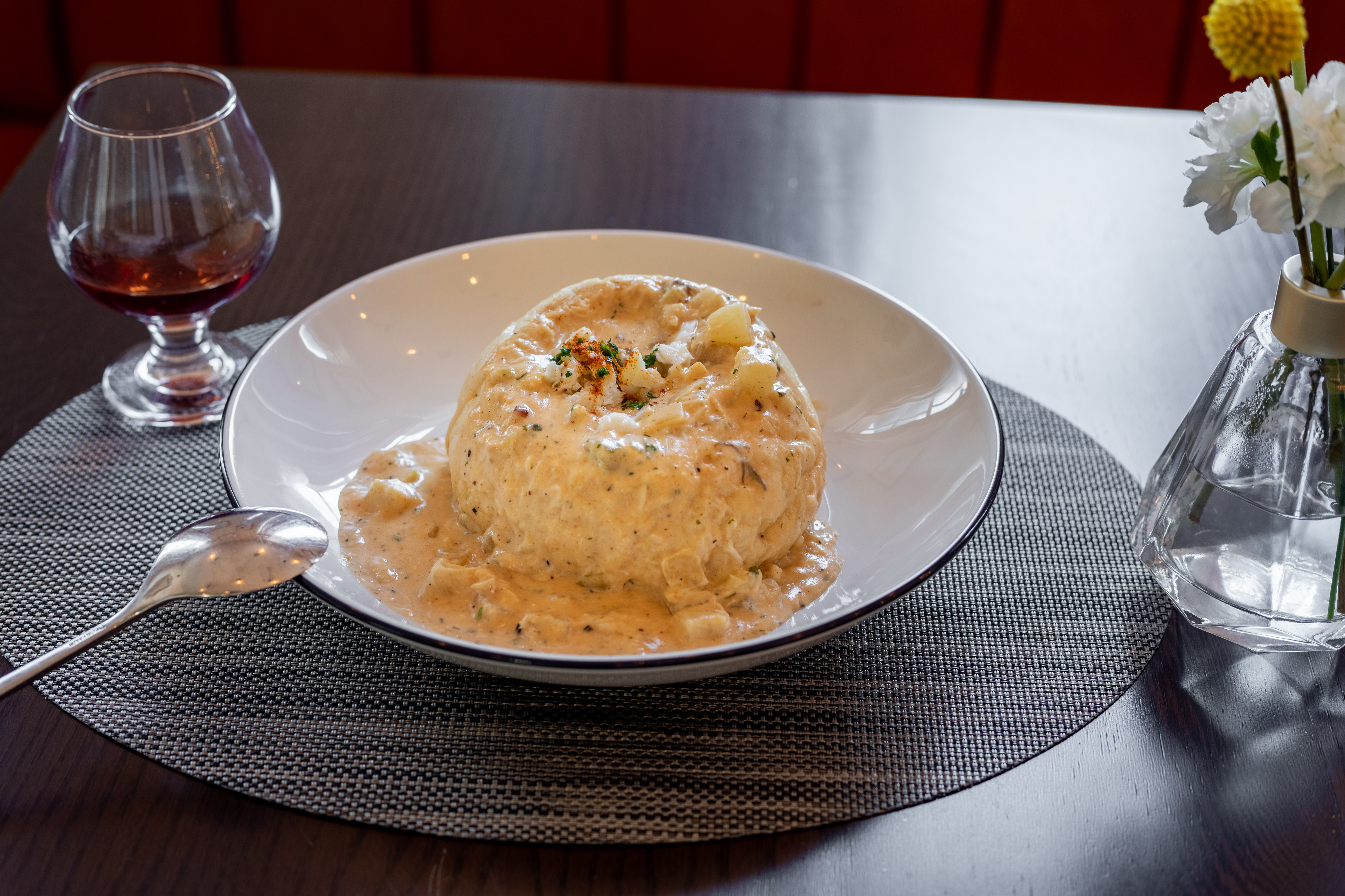 Maryland Crab and Clam Chowder served in a sourdough bread boule