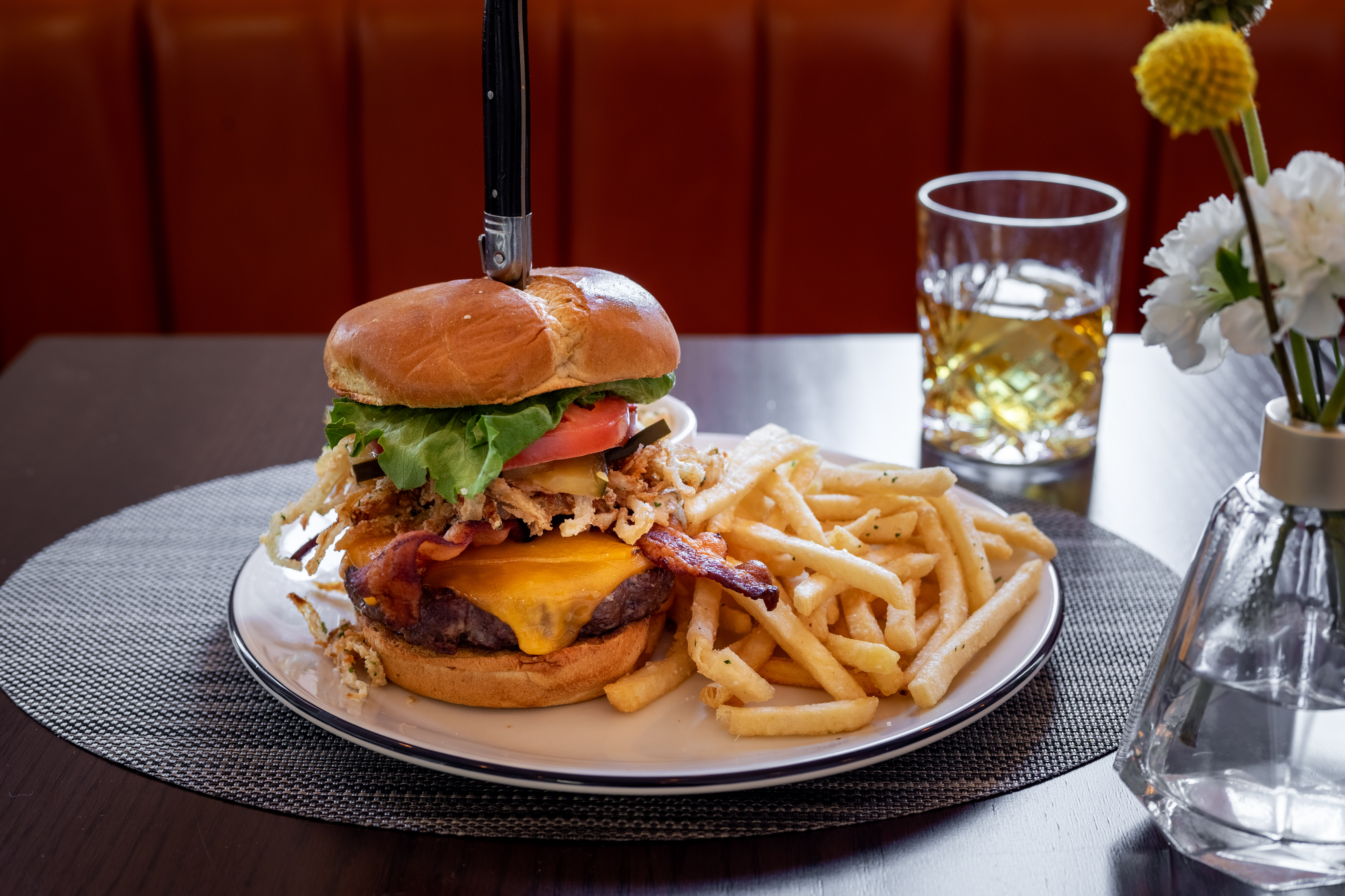 all-natural chuck, cheddar maple pepper bacon, A.1. aioli, fried onion straws, brioche bun